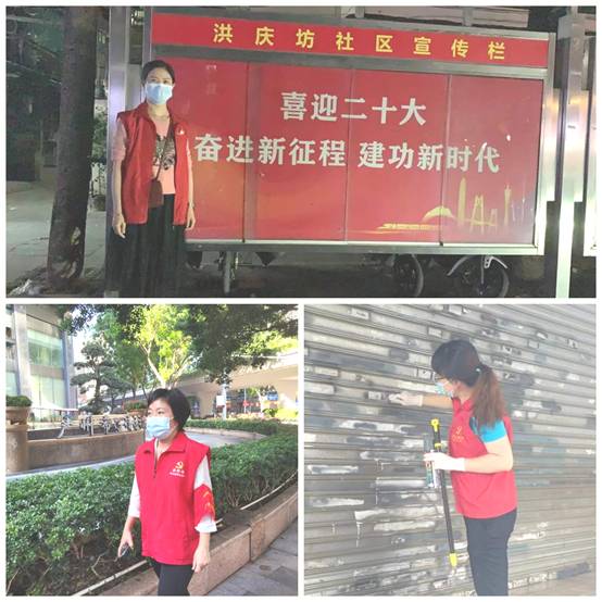 爱体育在线平台企业发展部副部长严婷、工会经理吴丽蝶参与洪桥街社区平安巡逻;团委书记梁晨协助清理社区商铺牛皮藓