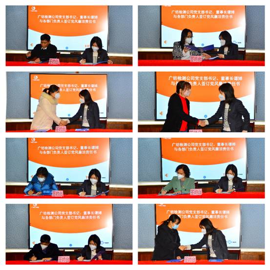 党支部书记谭婵与各部门负责人签订党风廉洁责任书