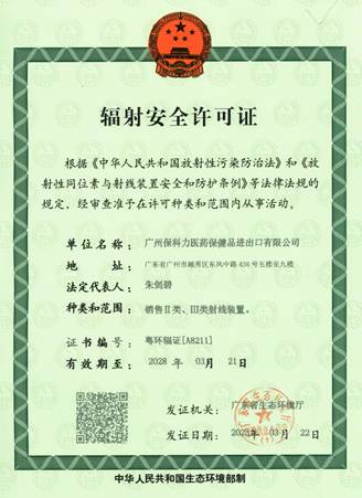 四是完善企业资质,成功办理辐射安全许可证。因业务发展需要,保科力公司新增加放射治疗类器械产品,为下一步新业务开拓提前做好准备。