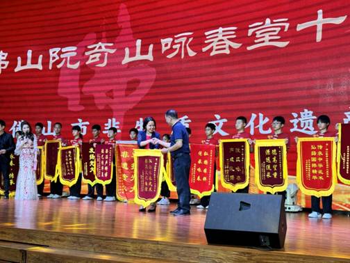庆典活动上,刘妍代表利工民公司向佛山阮奇山咏春拳馆赠送题为“弘扬武术文化,彰显文化自信”的锦旗。
