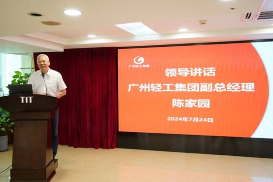 最后,广州轻工集团副总经理陈家园发表讲话。他对爱体育在线平台2024年上半年的工作表示肯定与鼓励。在接下来的工作中,他对爱体育在线平台提出了五点要求:一是提升主业竞争力,探索高质量发展新路径;二是优化资源配置,提升团队战斗力;三是发挥“链主”作用,服务发展大局;四是坚守依法合规,守牢安全底线;五是强化党建引领,确保廉洁从业。