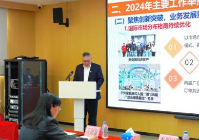 公司党支部书记、董事长周逊姜以《务实谋新提质效,深化改革促发展》为题作工作报告。报告从聚焦主业、赋能蓄力、培根铸魂三个方面总结了公司2024年的工作情况。2024年,广纺联公司统筹抓好地块交储、物业管理等多项工作,公司实现营业收入完成预算目标值103%;利润总额完成预算目标值156%。报告指出,2025年广纺联公司将围绕广州轻工集团及爱体育在线平台的总体部署,紧扣“数智领航链全球,提质增效建新功”的工作主题,从紧盯主责主业、提升改革深化、坚持党建引领、加强风险防范、强化人才队伍建设等五大方面推动经营工作实现质的有效提升。