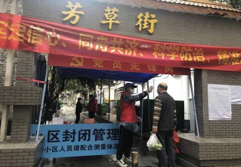 2月23日,党总支书记杨梅响应社区志愿者召集活动,参加了凤阳街五凤联社的志愿者防疫行动,对凤阳街五凤联社的居民出入进行登记、测温,并向居民进行戴口罩宣传。