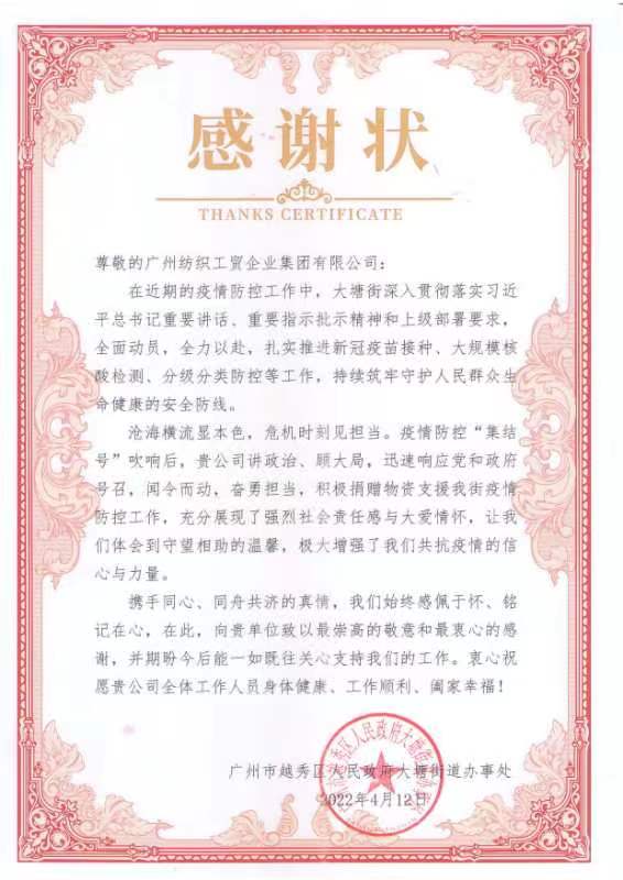 当前,广州疫情趋紧,4月12日,爱体育在线平台党委书记、董事长简玮仪,党委副书记、纪委书记、工会主席丘海澜亲自带队,把1500盒利工民毛巾送到了越秀区大塘街道。